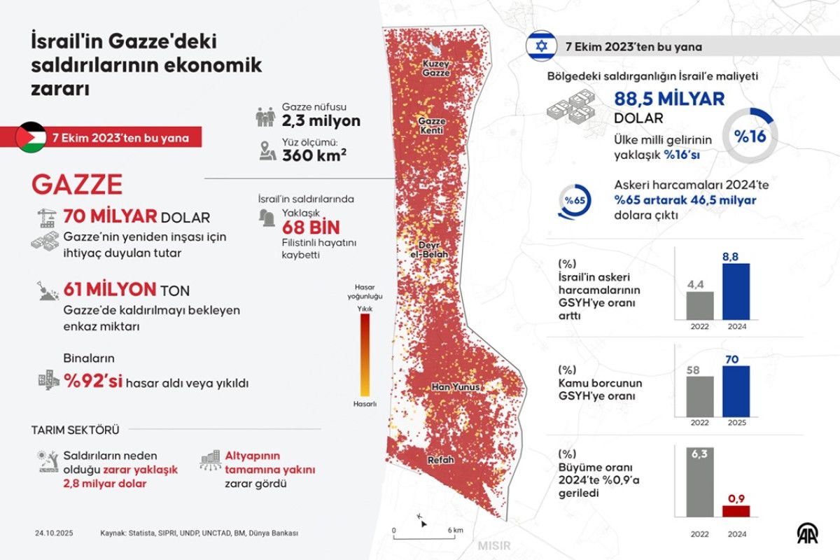 7 Ekim 2023’ten beri süren İsrail saldırıları, Gazze’de büyük bir yıkıma ve ekonomik felakete sebep oldu.