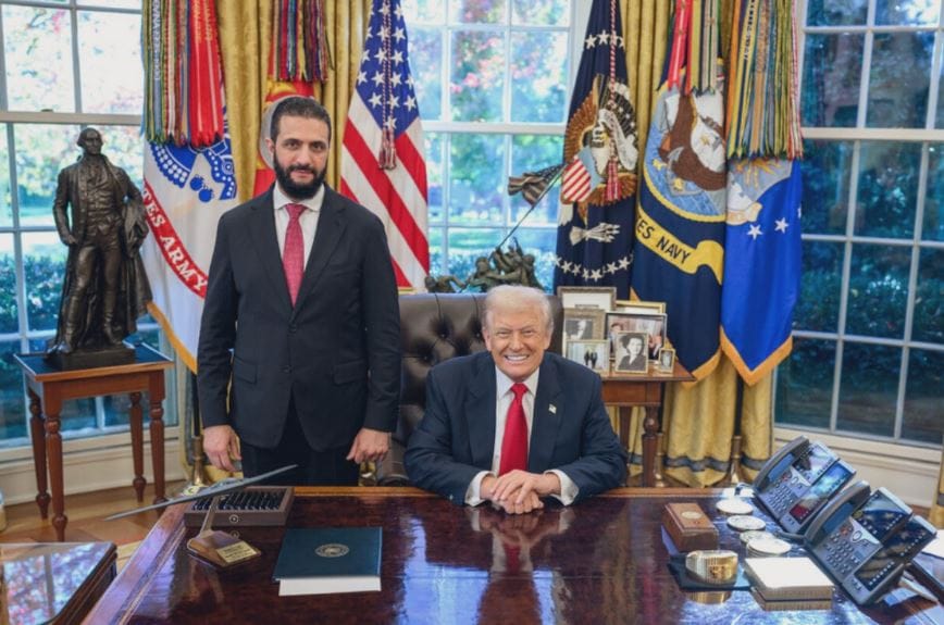 Beyaz Saray’da gerçekleştirilen görüşme, bir Suriye devlet başkanının ilk kez ABD Başkanı ile bir araya gelmesi bakımından tarihî bir nitelik taşıyor. Görüşmenin basına kapalı yapıldığı, tarafların karşılıklı olarak bölgesel güvenlik, insani yardım ve ekonomik iş birliği konularında görüş alışverişinde bulunduğu öğrenildi.